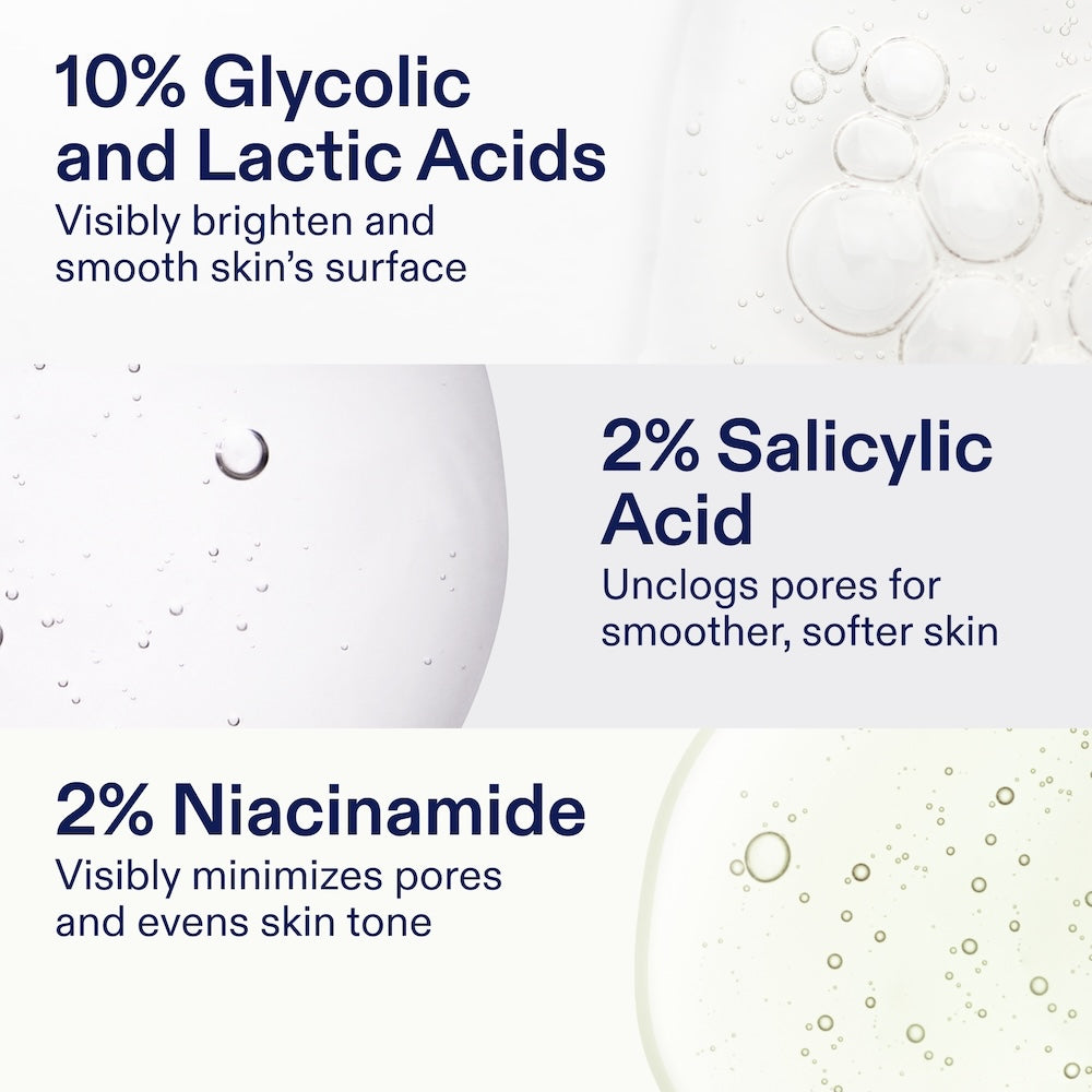 - 1% Salicylic Acid: An oil-soluble BHA exfoliant that unclogs pores for smoother, softer skin
