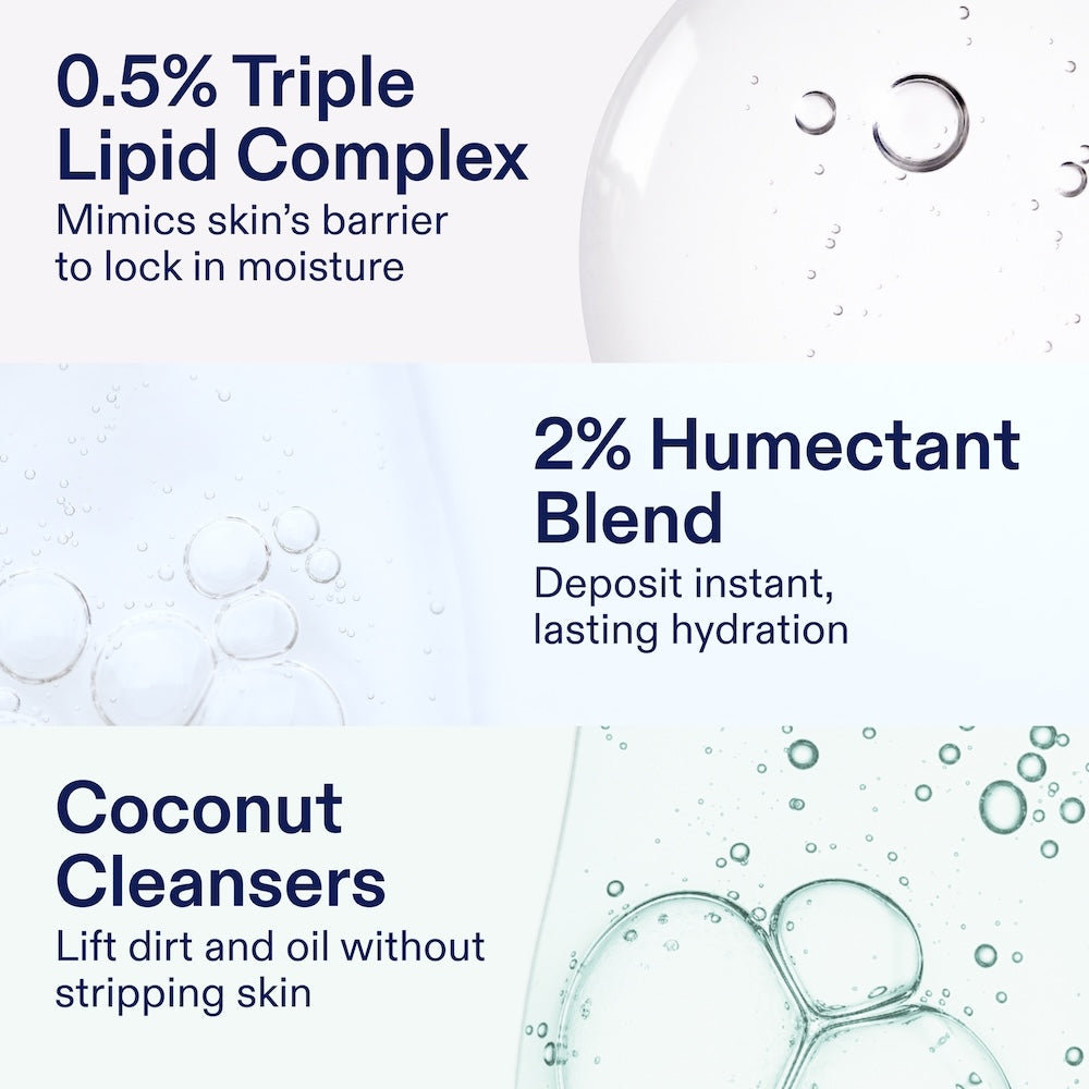 - 0.5% Triple Lipid Complex: Ceramides, sterols and fatty acids mimic skin's barrier to lock in moisture